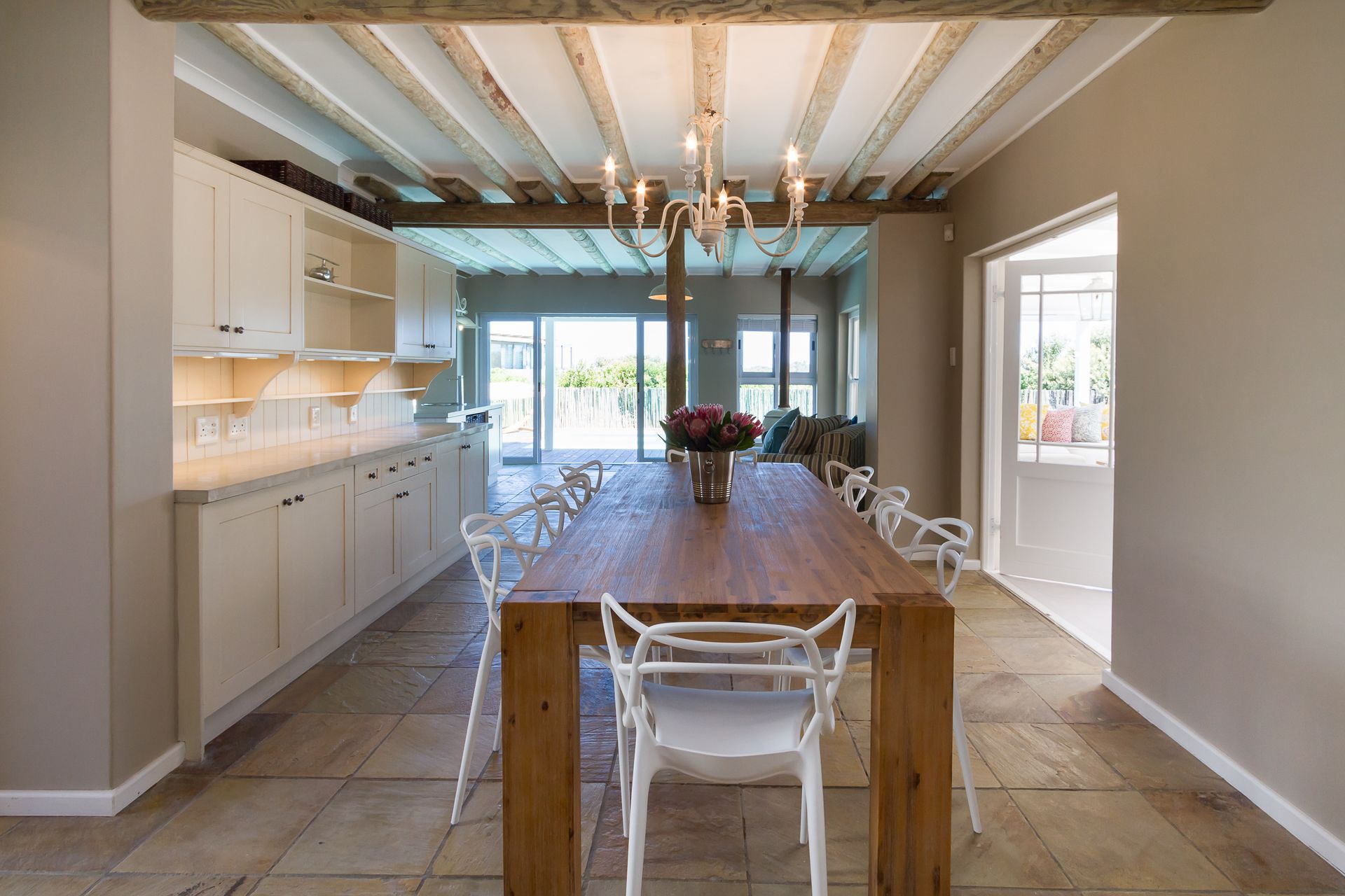 Fin Whale Beach House offers stylish simplicity – a splendid family friendly beach house, newly renovated and furnished with everything you need for a relaxing holiday. Simply kick off your shoes and step from the deck onto the white sands of Long Beach whilst enjoying spectacular sea and mountain views. Located in the upmarket Klein Slangkop Security Estate, the house has a relaxed holiday ambiance for all seasons. Snuggle up next to the fireplace in winter or explore the surrounding area in summer. An ideal spot for long walks on the beach.