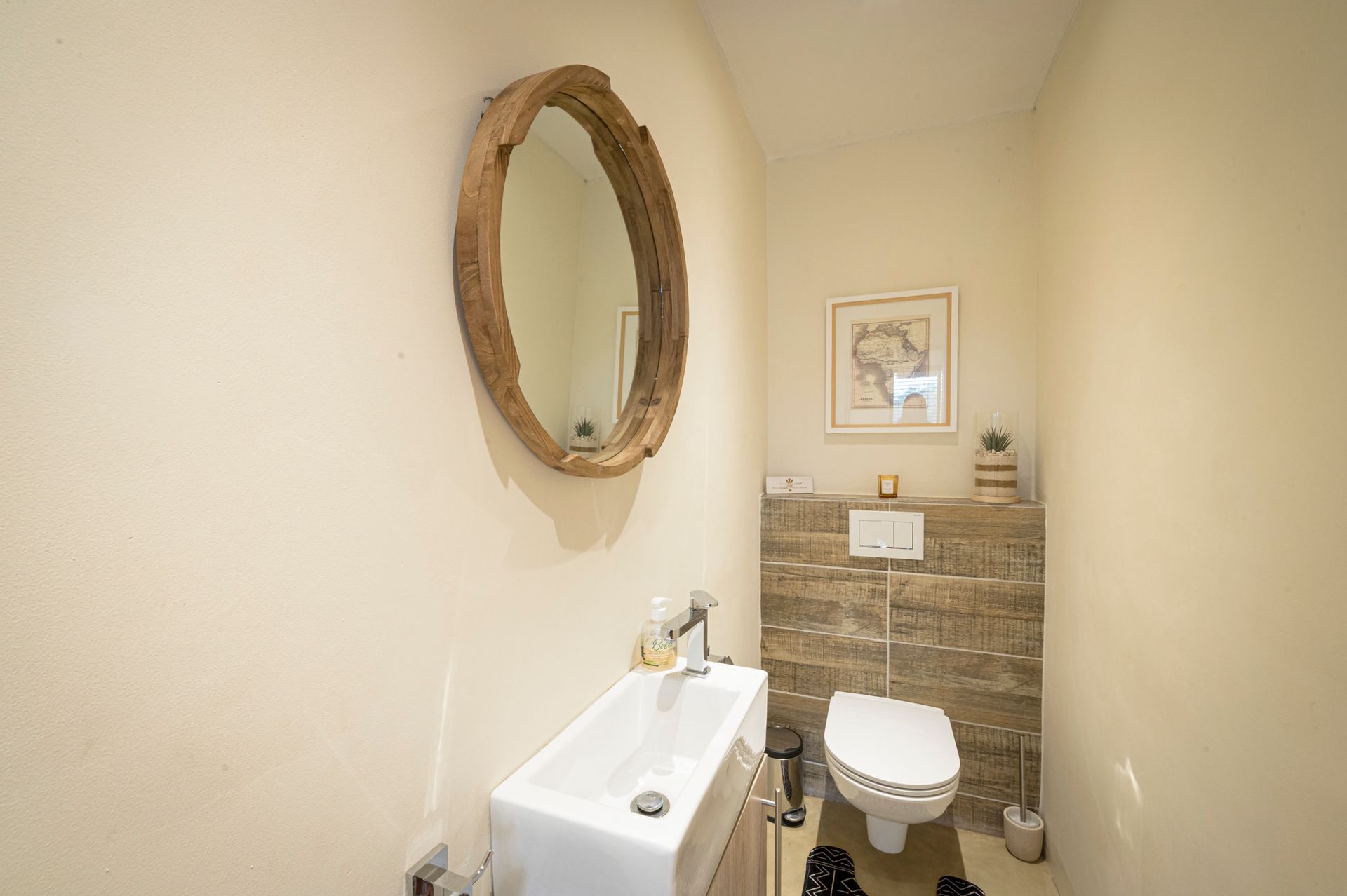 Stepping into the heart of the villa, the open-styled kitchen beckons with modern elegance. Beneath a breathtaking African-inspired chandelier, this culinary space is equipped with top-notch conveniences, including a Nespresso coffee machine for morning indulgences, a gas top stove and oven for culinary creations, and an expansive American fridge to keep refreshments at the ready. The centre island, a hub of activity, not only enhances the functionality of the kitchen but also fosters a social vibe, making it a natural gathering spot. As day transitions to night, the outdoor sanctuary beckons with a private heated swimming pool, offering a refreshing escape, while an adjacent utility room ensures added convenience with a washing machine, dryer, and dishwasher—all seamlessly blending into the villa's exquisite charm.